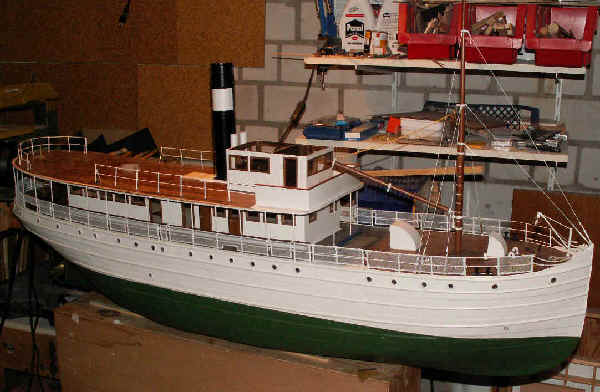 Ansonsten habe ich am Bootsdeck die Stützenkonstruktion für die Persenning fertiggestellt, die Türen zum Steuerhaus und Rauchsalon angebaut, und noch ein paar Kleinteile wie einen Wassertank etc.