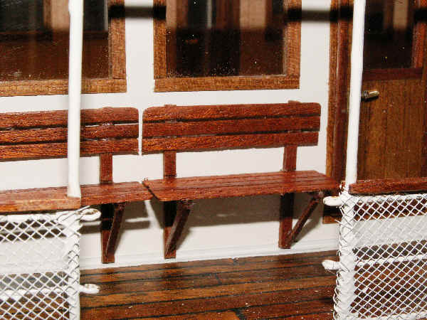 Auf dem Hauptdeck wurden ebenso Bänke zum Sitzen installiert (Mahagonifurnierleisten: Bretter 3mm breit, 0,8mm dick, Unterkontruktion aus 1,5mm Leisten).