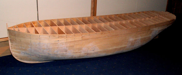 08.02.2009: Die Beplankung ist fast fertig. Die erste Spachtel- und Schleifprozedur liegt hinter mir. Für 2 Wochen Bauzeit ein ganz respektables Ergebnis.