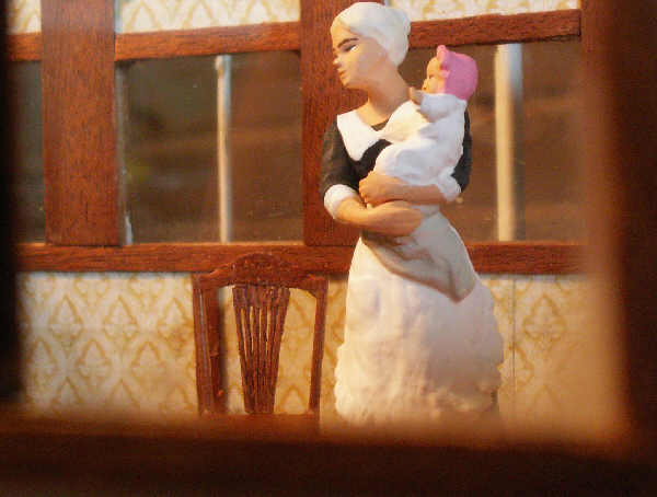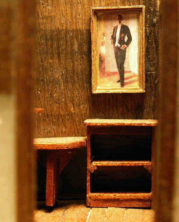 Außerdem habe ich an der Inneneinrichtung angefangen. Der Rauchersalon hat nun schon eine Sitzbank (die bekommt noch ein Lederpolster und steht deshalb auch noch nicht richtig auf dem Boden), ein kleines Bücherregal (ja,ja, die Bücher fehlen :-) ), einen Tisch und eine Nachbildung eines Gemäldes von Anders Zorn vom schwedischen König.