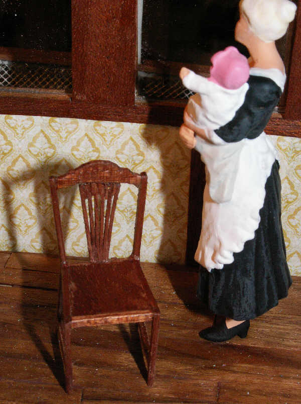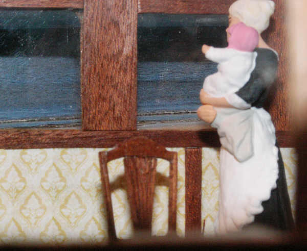 Zum Spaß habe ich den ersten Stuhl mal ins Restaurant gestellt und eine der Preiserfiguren - für das erste Foto ohne Dach und die anderen beiden dann praktisch aus Sicht vom Deck durchs Fenster. (das Meer hinter dem Fenster ist übrigens ein Fotobildband :-))